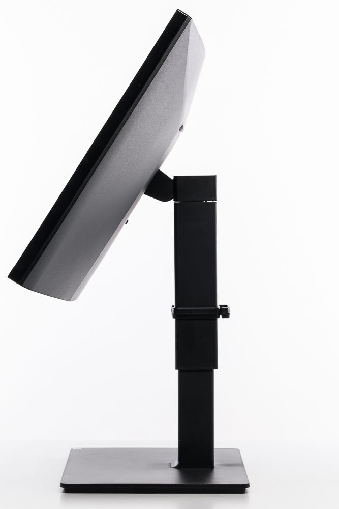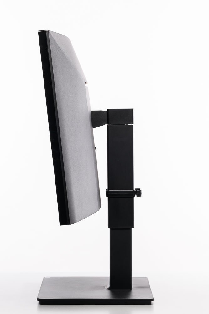 Dabei ist auch die Mechanik des Standbeins sehr gut. Alle Funktionen lassen sich einerseits sehr zuverlässig und andererseits sehr leichtgängig einstellen. Bemängeln könnte man höchstens die Minimalhöhe des Displays, die mit knapp 11 cm relativ hoch ausfällt (Schreibtisch zur Unterkante des Bildschirms bei aufrechter Stellung). Wer gern mit einer etwas stärkeren Neigung arbeitet, könnte das unter Umständen störend finden. Bei maximaler Neigung ist die Unterkante des Displays ca. 19 cm über dem Schreibtisch.