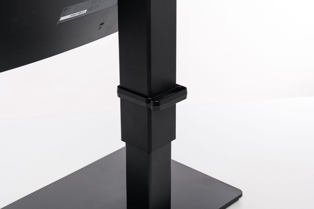 Das Standbein hat eine kleine Öffnung, in die sich der Kabelclip sicher einrasten lässt. Damit lassen sich die Kabel gut bündeln und nach unten abführen. Der Clip macht einen recht stabilen Eindruck.