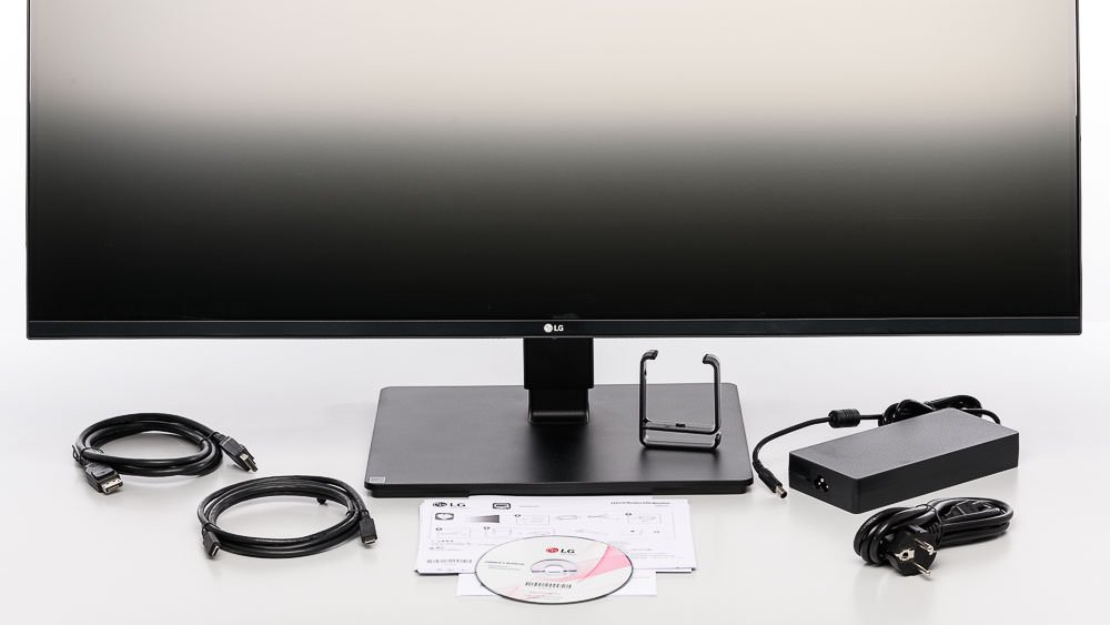 Zum Lieferumfang gehören neben dem Netzteil auch Kabel für USB-C und den DisplayPort-Eingang. Der Kabelclip hilft beim Bündeln der Kabel und lässt sich einfach an der Rückseite des Standbeins befestigen. Wenn auch nicht mehr zeitgemäß, liegt dem Karton sogar eine CD bei. Meist ist man ohnehin am besten damit beraten, sich die aktuellen Versionen von Software und Handbuch im Web zu besorgen. Hier ist die CD aber praktisch eine komplett sinnfreie Beigabe, denn darauf sind weder Treiber oder Standardfarbprofil noch ein Handbuch zu finden. Auf der Produktseite des Gerätes läuft der Menüpunkt „Support“ derzeit leider auch nur ins Leere.