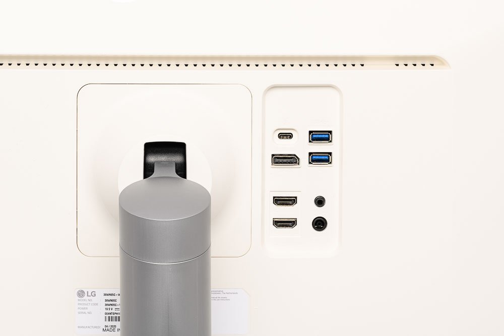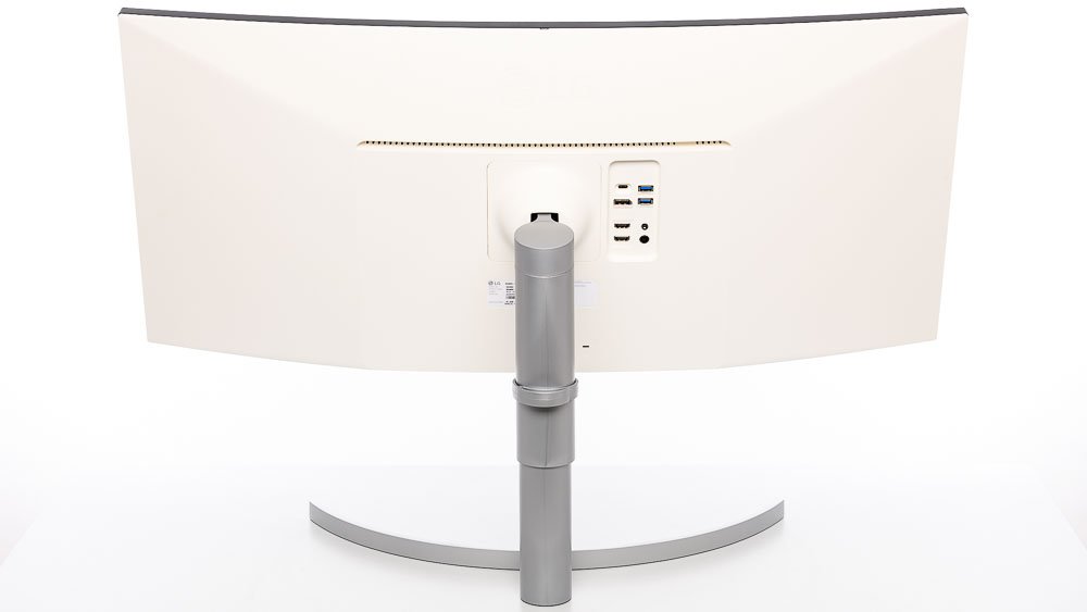 Die Höhenverstellung erfolgt butterweich und fast lautlos – vermutlich ist sie Gasdruck-gefedert. Gemessen am Einsatzzweck ist die Ergonomie des LG 38WN95C-W damit insgesamt sehr gut.
