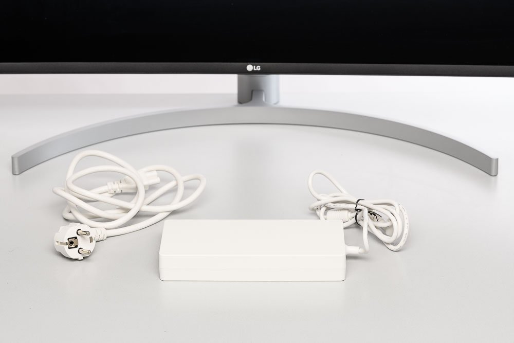 Die Stromversorgung ist beim LG 38WN95C-W in einem externen Netzteil untergebracht. Es ist mit ca. 18 x 8,5 x 2,6 cm schon ein ordentlicher Ziegel. Beim normalen Arbeiten ist dafür auch nach längerem Betrieb kaum eine Erwärmung spürbar.