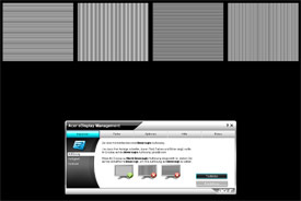 Es besteht auch die Möglichkeit, eine Kalibrierung per Augenmaß anhand einiger Testbilder durchzuführen. Zusätzlich wird ein Pivot-Treiber installiert, mit dem ein Betrieb im Hochkantmodus möglich wird, falls der Grafikkartentreiber dies nicht ohnehin unterstützt.