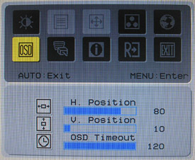 Die „Auto-Taste“ ist bei aufgerufenem OSD für das Abbrechen einer Auswahl bzw. Änderung zuständig. Bei Anschluss per DVI-D, d.h. im „digitalen Betrieb“, bleibt die Taste ohne eigenständige Funktion. Nutzt man die Zuspielung per D-Sub-VGA, wird bei Betätigung eine Auto-Justage ausgeführt, die bei Bedarf im Menü weiter verfeinert werden kann.