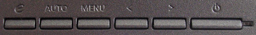 Die Bedienung des Bildschirms erfolgt über sechs Tasten, die in der unteren rechten Bildschirmecke angebracht sind. Druckpunkt und Haptik sind eher mäßig und die Beschriftung bei schlechter Beleuchtung kaum zu erkennen. Aufgrund der überwiegend fixen Belegung der Tasten ist das allerdings kein großer Nachteil. Die Funktionen sind schnell eingeprägt.