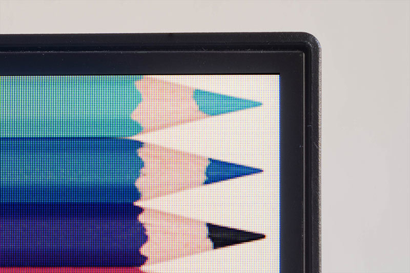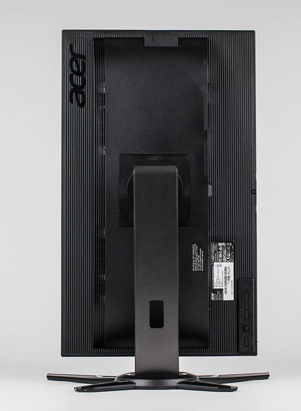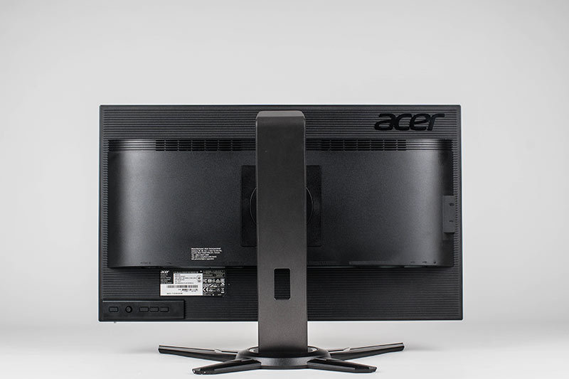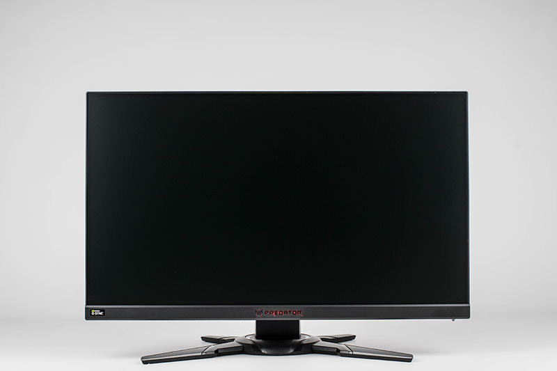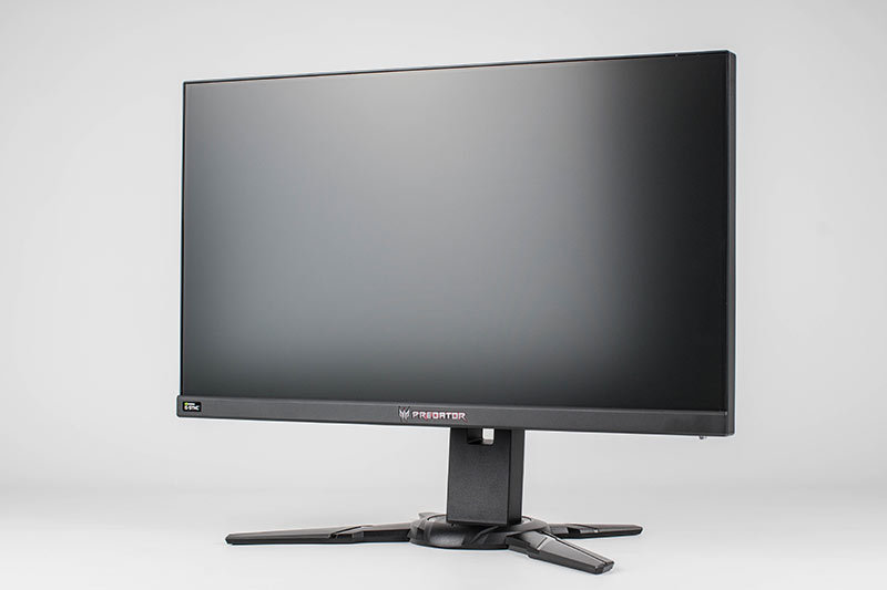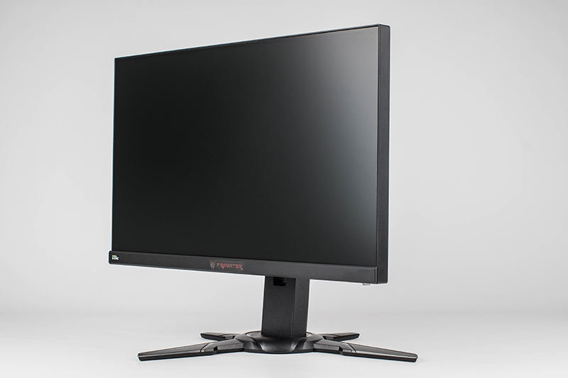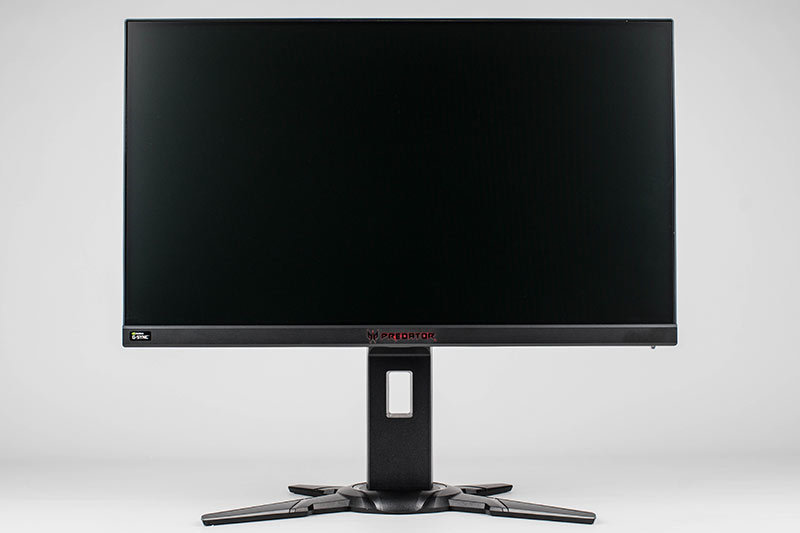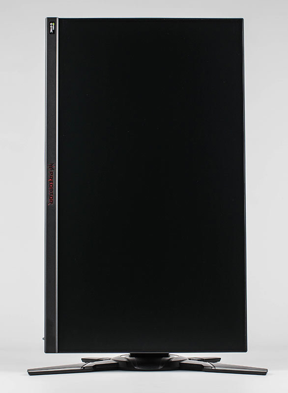 Der Acer Predator XB252Q besteht komplett aus schwarzem Kunststoff und verfügt an den Seiten und oben über ein sogenanntes rahmenloses Design. Dort wird das Panel über ein etwa 3 mm breites Band eingefasst. Das sichtbare Bild beginnt allerdings erst weitere 4 mm vom Panel-Rand.