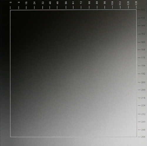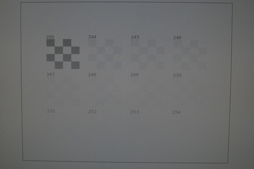 In der Disziplin Graustufendarstellung schneidet der S243HLbmii bloß mittelmäßig ab. So verschluckt er die fünf dunkelsten und die fünf hellsten Werte.