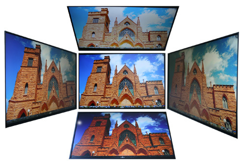 Erfreulich ist der subjektive Eindruck, dass Farben nirgends komplett umgekehrt werden, ein Negativeffekt bleibt gänzlich aus. Selbst von oben betrachtet, hält das Bild stand; das Blasserwerden und die kälteren Farben sind bis zu einem bestimmten Winkel noch akzeptabel. Kritisch sind die Veränderungen jedoch, sobald der Monitor aus einem praxisfernen Winkel von unten betrachtet wird.