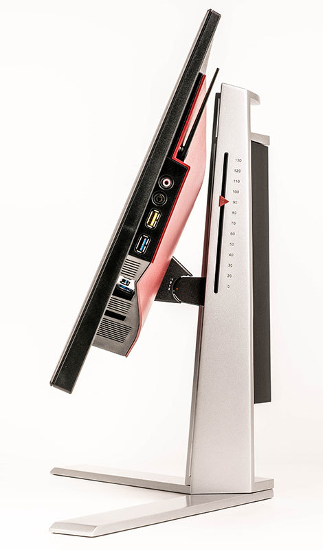 Man wundert sich etwas, dass der AOC AG241QX den gleichen riesigen Belüftungsschlitz wie die G-Sync-Ausführung hat, der sich oberhalb des diagonalen Gehäuses über die gesamte Breite des Monitors erstreckt, da im Grunde überhaupt keine zusätzliche Wärme erzeugt wird.