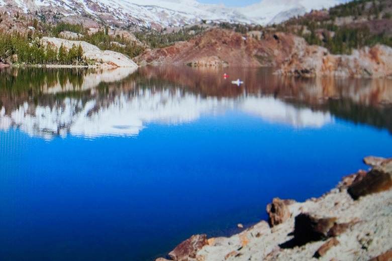 Das auftretende Banding wurde bei der Erstellung des Blickwinkelbildes zufällig noch einmal sichtbar. In dem Blau des Sees trat es ebenfalls auf. Wobei es hier deutlicher in Erscheinung trat, als bei den Grauverläufen und wirklich störend wirkte. Danach stellte sich die Frage, ob der MX279H generell Probleme bei der Darstellung von Farbverläufen hat.