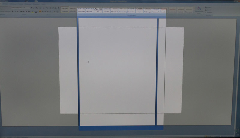 Wird zum Beispiel das Format DIN A4 gewählt, wird in der Mitte die Größe eines DIN-A4-Blattes im Hoch- und Querformat angezeigt und die anderen Bereiche leicht ausgegraut, dadurch sollen Dokumente und Fotos unabhängig vom gewählten Programm in der gewünschten Größe betrachtet werden können. Eigene Größen sind dabei nicht einstellbar, was etwas unpraktisch ist, da sich die Größen eher an amerikanischen Formaten orientieren.
