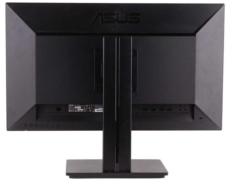 Der Monitor besitzt gleich drei HDMI-Anschlüsse, außerdem einen DisplayPort sowie einen Audioeingang und Audioausgang. Gegenüber dem Vorgängermodell wurden ein HDMI- und ein Mini-DisplayPort-Anschluss eingespart. Dafür wurde einer der HDMI-Anschlüsse auf den aktuellen 2.0-Standard aktualisiert. Über diesen kann auch per HDMI die native Auflösung mit 60 Hz dargestellt werden.