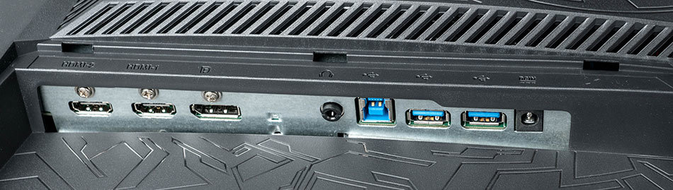 Mit einem DisplayPort und zwei HDMI-Schnittstellen für Bildsignale verfügt das Display über eine ordentliche Auswahl, wovon ein HDMI-Eingang sogar in der Version 2.0 vorliegt und damit auch UHD-Material bei 60 Hz wiedergeben kann. Für Tonsignale können Kopfhörer mit 3,5-mm-Klinkenstecker verbunden werden. Zusätzlich stehen ein USB-3.0-Upstream-Port und zwei USB-3.0-Downstream-Ports zur Verfügung.