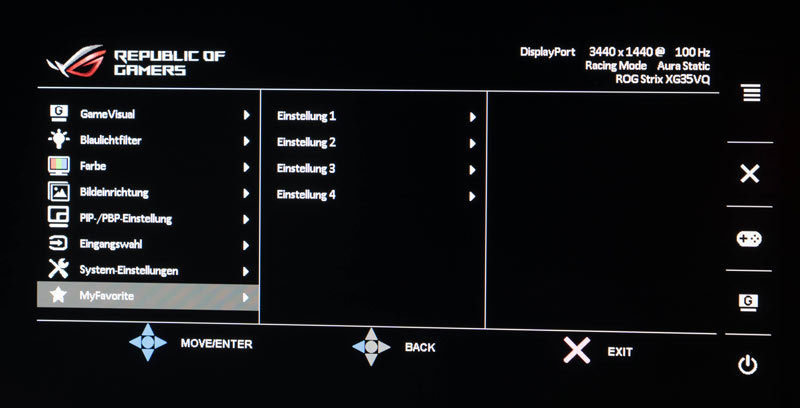 Unter „GameVisual“ und „MyFavorite“ stehen mehr als genug Speicherplätze zur Verfügung