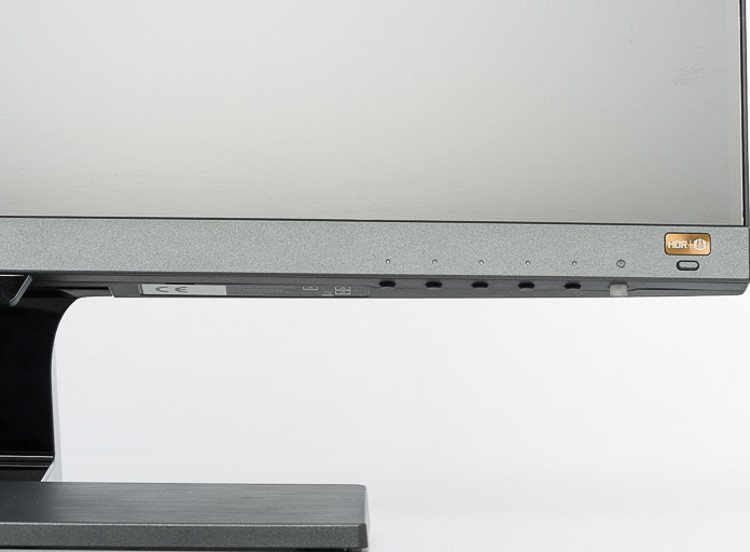 An der Rahmenvorderseite (unter dem bronzefarbenen HDR-Logo) gibt es noch eine Zusatztaste. Damit können jederzeit HDR-Unterstützung und die BenQ-Technologie „Brightness Intelligence Plus“ (BI+) ein- und ausgeschaltet werden.