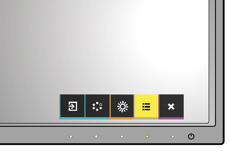 Wie üblich führt ein beliebiger Tastendruck auf eine der Multifunktionstasten zunächst zu einer Schnellauswahl, deren Funktionen direkt über den Tasten angezeigt werden. Quellwahl, Farbmodus und Helligkeit lassen sich so ohne Umweg über das Menü erledigen.