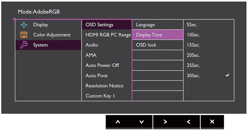 Wirklich ärgerlich ist aber das Verdrehen der Pfeiltasten für links und rechts im Vergleich zur gängigen Bedienung, die man seit Urzeiten von Steuerkreuzen kennt. Insofern hat der OSD-Controller doch wieder Sinn, weil hier die Bedienung wie erwartet funktioniert.