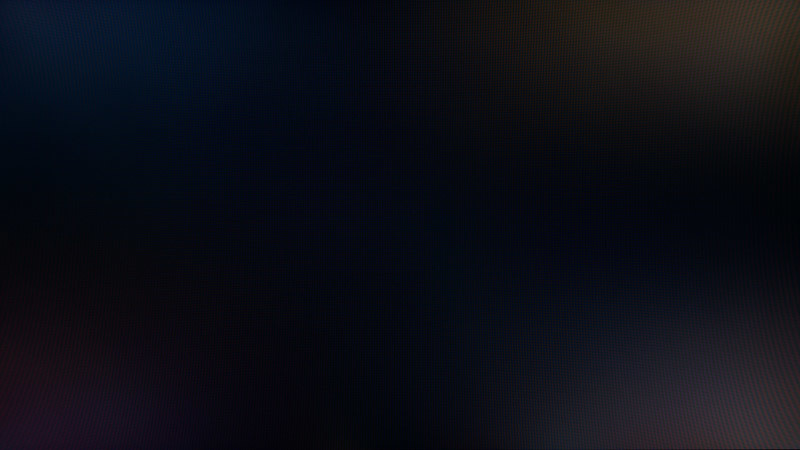 Auch mit freiem Auge sind beim Schwarzbild Aufhellungen und Einfärbungen in den Ecken deutlich zu erkennen. Teilweise hängt das mit der beschriebenen Blickwinkelabhängigkeit zusammen. Auch die Ecken werden komplett schwarz, wenn man direkt senkrecht darauf schaut. Allerdings hellen sich dann andere Bereiche noch stärker auf, so dass man nie ein vollständig schwarzes Bild zu sehen bekommt. Richtig schwarz ist der Monitor also immer genau dort, wo man nahezu senkrecht auf seine Oberfläche schaut.