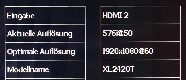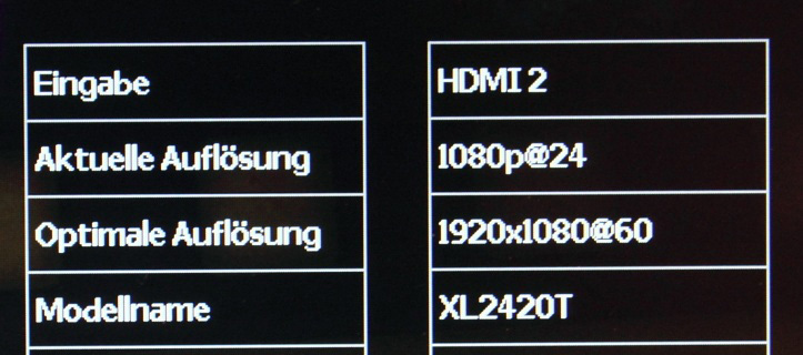 Für die nachfolgenden Tests haben wir den Monitor per HDMI-Kabel mit einem Blu-Ray-Player verbunden. Lautsprecher besitzt der Monitor wie angesprochen nicht, auch keinen TV-Tuner oder eine Bild-in-Bild-Funktion. Die zugespielten Refreshraten konnte er aber alle darstellen. Neben den üblichen 60 Hz waren auch 50 und sogar 24 Hz darstellbar.