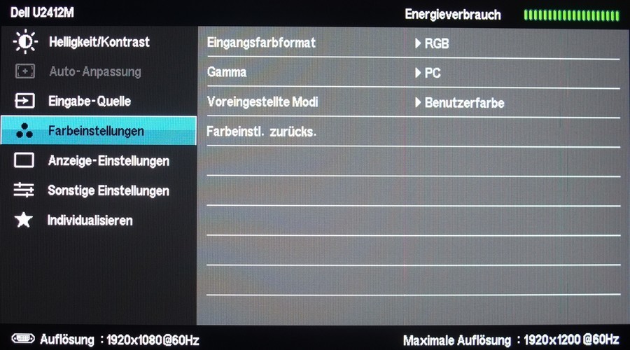 Im OSD kann man unter der Bezeichnung „Intelligente Energieeinsparung“ den sogenannten Sparmodus aktivieren. Leider dienen diese Modi meist mehr dem Marketing als der tatsächlichen Reduzierung des Energieverbrauchs. Leider macht diesbezüglich auch der U2412M keine Ausnahme.