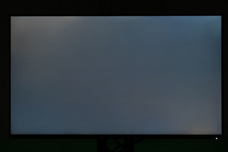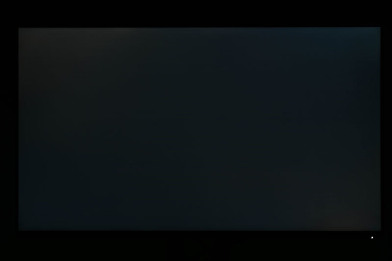 Die Schwarzbilddarstellung ist nahezu tadellos. Erst bei genauerem Hinsehen kann man oben links und unten rechts zwei Highlights entdecken, die selbst in absoluter Dunkelheit nur wenig auffallen. Erst bei fünffach verlängerter Belichtungszeit sind die Einstrahlungen deutlicher zu erkennen. Clouding ist ebenso kein Problem für den U2417H. Der Schwarzwert ist für ein IPS-Panel ungewöhnlich gut und kommt dem eines VA-Panels schon sehr nahe. Auch der Glow ist erfreulich gering. Zwar hellt das Bild etwas auf, da die Hintergrundbeleuchtung durchscheint. Es entsteht dabei aber nicht der gelbe Schleier, der sich bei vielen IPS-Panels über den Bildschirm legt.