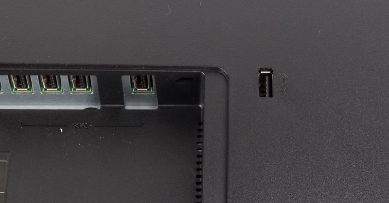 Ein weiterer USB-3.0-Anschluss liegt direkt neben den Anschlüssen und wird nicht von unten, sondern von hinten bedient. Dieser Anschluss verfügt zudem über eine Funktion, über die externe Geräte schneller geladen werden können. An einer gut zu erreichenden Stelle liegt der Port aber nicht, so dass er in der Praxis wohl keine große Rolle spielen dürfte. Anschlüsse im oder direkt hinter einem der beiden seitlichen Rahmen hätten wir sinnvoller gefunden.