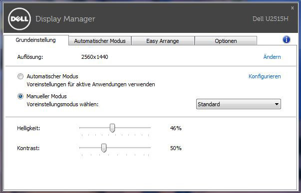 Die Software „Display Manager“ bietet einige Einstellungen des OSDs an, die bequem per Maus verstellt werden können. Verfügbar sind aber nur die Grundeinstellungen, also die Wahl des Bildmodus, der Helligkeit und des Kontrastes. Alle anderen Einstellungen müssen weiterhin über die Touch-Tasten ausgeführt werden.