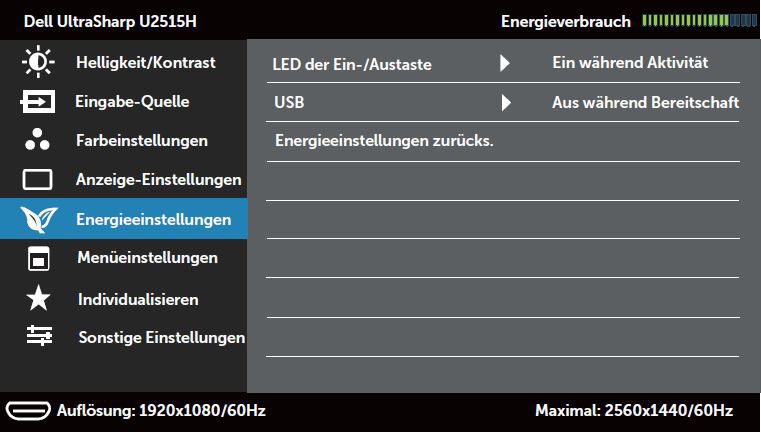 Im fünften Abschnitt lassen sich die LED und die USB-Funktion aktivieren oder abschalten. Dies als „Energieeinstellungen“ zu bezeichnen, ist aber etwas hoch gegriffen. Es lassen sich in den weiteren Reitern noch die OSD-Eigenschaften verstellen, die beiden Schnelltasten belegen und einige allgemeine Einstellungen vornehmen.