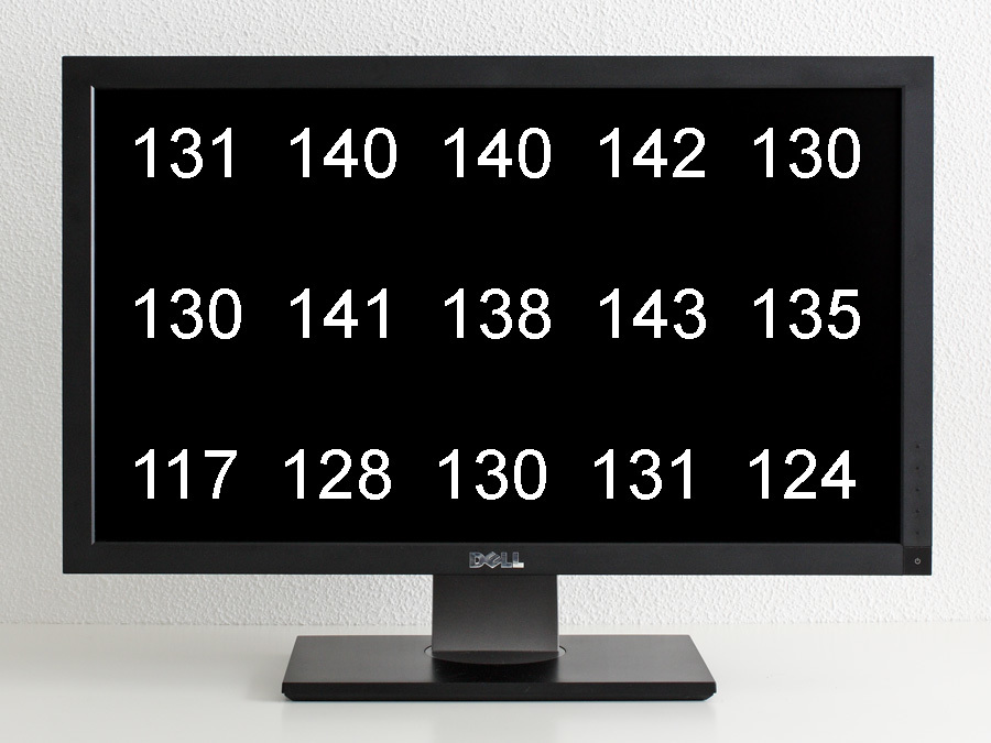 Die gemessenen Helligkeitsabweichungen fallen für unser Testgerät überwiegend sehr gering aus. Das ist insbesondere aufgrund der Tatsache, dass der DELL U2711 keine Kompensationsschaltung zur Verbesserung der Bildhomogenität implementiert, erfreulich.