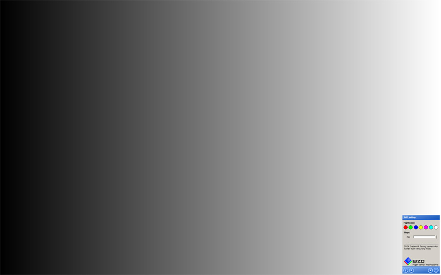 sRGB- und AdobeRGB-Modus zeigen leichtes, aber nicht störendes Banding. Unschöne, spatiale Dithering-Artefakte, die in der ersten Revision des U2410 auftraten, waren nicht zu erkennen. Die im „Custom Color“-Modus zugänglichen RGB-Gain Regler haben keine sichtbaren Auswirkungen auf den Tonwertumfang. Nach der Softwarekalibrierung unter Berücksichtigung der Empfehlungen für sRGB und ECI-RGB, tritt durch die verlustbehafteten Korrekturen in der Grafikkarten-LUT leichtes Banding auf. Eine Kalibration auf die Empfehlungen für AdobeRGB (Weißpunkt D65, Gamma: 2.2) führt im Vergleich zu der geringsten Streifenbildung, da das Bildschirmgamma der gewünschten Charakteristik hier am nächsten kommt.