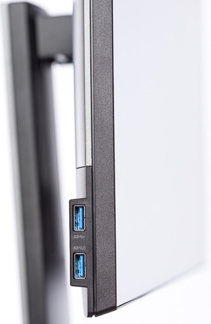Zusätzlich bietet der integrierte USB-3.0-Hub eine komfortable Möglichkeit, um z. B. USB-Sticks anzuschließen. Zwei der Eingänge sind sehr gut zugänglich im Rahmen links integriert, zwei weitere Geräte können auf der Rückseite angeschlossen werden.