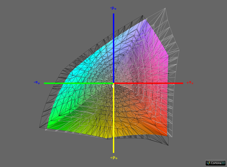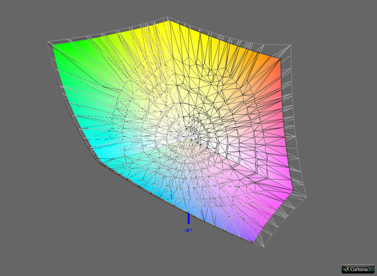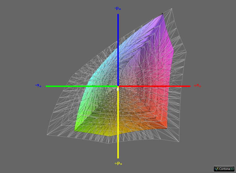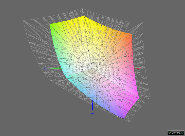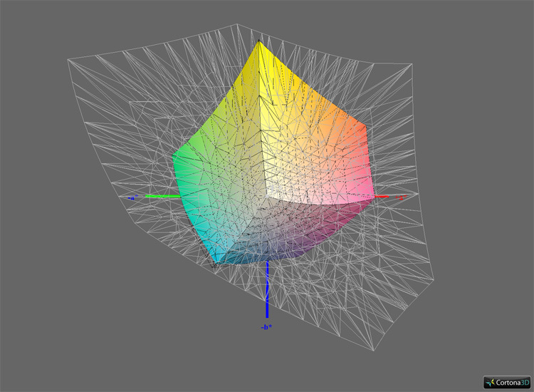 sRGB und AdobeRGB werden fast vollständig abgedeckt. Präzise kann auch die durch die FOGRA39-Charakterisierungsdaten beschriebene Offset-Druckbedingung reproduziert werden. Damit sind aussagekräftige Proof-Simulationen möglich. Der Farbumfang fällt insgesamt um etwa fünf Prozent geringer als beim Eizo CG277 aus.