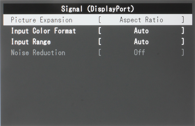 Über den DisplayPort-Eingang können Signale mit 10 Bit pro Farbkanal zugespielt werden. Dies erfordert eine Unterstützung durch Grafikkarte, Betriebssystem, Treiber und Anwendung und ist derzeit noch auf wenige Konstellationen beschränkt. Adobe Photoshop hat in aktueller Version mit einer entsprechenden Anzeige keine Probleme. Der HDMI-Eingang verarbeitet auch eine Farbtiefe von 12 Bit pro Kanal.