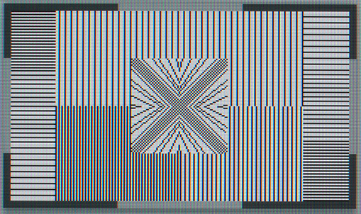 Unsere Testsignale werden gut verarbeitet. Eine Skalierung durch die Grafikkarte verbessert die Darstellung nicht. EIZO verzichtet auf einen separaten Schärferegler, der jedoch in den meisten Umsetzungen ohnehin meist nur fragwürdige Verbesserungen erzielt.