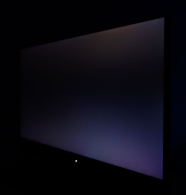 Je größer der seitliche Betrachtungswinkel wird desto mehr dunkelt das Panel des Eizo FS2434 nach hinten hin ab. Ein weißes Testbild wird dann gräulich wahrgenommen. Dieser Effekt hat wiederum positive Auswirkungen auf das typische Verhalten von IPS Panels nämlich Aufhellungen dunkler Tonwerte aus dem Winkel. Diese fallen beim Eizo FS2434 verhältnismäßig gering aus. Dennoch sind auch beim FS2434 bereits aus zentraler Betrachtungsposition leichte Aufhellungen dunkler Tonwerte in der rechten aber vor allem linken unteren Displayecke sichtbar.