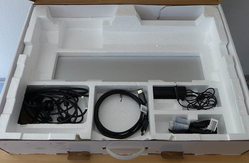 Der Lieferumfang des HP Envy 27 ist sehr reichhaltig und die Unterbringung im über 8 kg schweren Karton extrem kompakt. Nach dem Aufklappen findet man zunächst die Kurzanleitung im DIN A3 Format, sowie die Software CD.