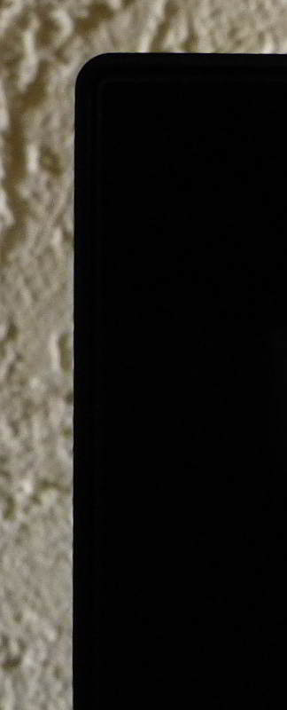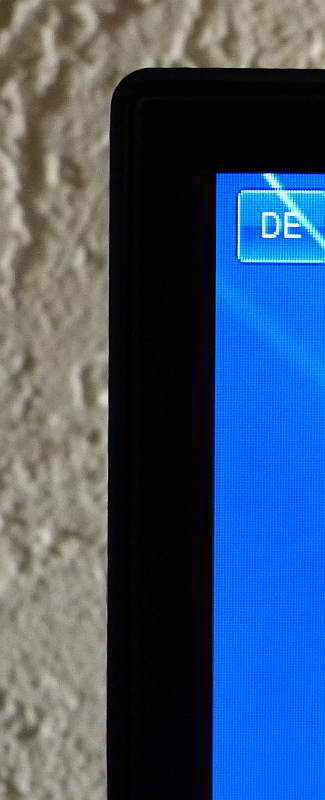 Erst nach dem Einschalten wird ein schmaler, begrenzender schwarzer Streifen links, rechts und oben sichtbar.