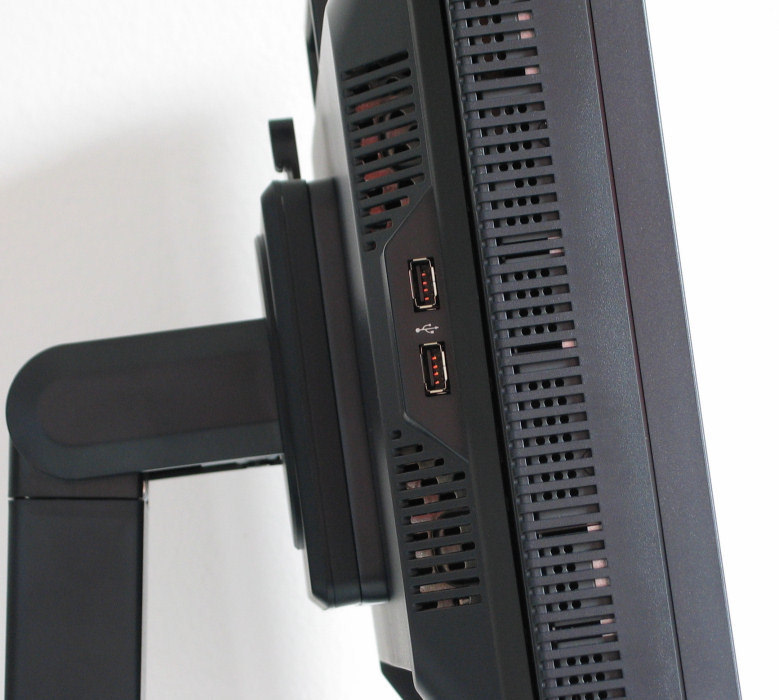 Die Angabe für den typischen Stromverbrauch ist vom Hersteller nicht auf 140 cd/m² vorgeschrieben, wurde aber zum Vergleich mit den hier üblichen Werten, die bei einer dauerhaften Verwendung empfohlen werden, herangezogen. Des Weiteren soll in den recht hoch gegriffenen 75 Watt eine 50 prozentige Auslastung des USB-Hubs inbegriffen sein, was bei unseren Messwerten noch mehr als genug Spielraum offen lässt.