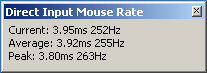 Die USB-Paketrate über den eingebauten USB-Hub wurde mit einer Maus und bei gleichzeitiger Benutzung von zwei Mäusen überprüft. Solange nur eine Maus angeschlossen ist, konnte kein Unterschied zum direkten Anschluss an einen USB 2.0 Port am PC festgestellt werden. Bei gleichzeitiger Benutzung von zwei Mäusen war die durchschnittliche Datenrate verdoppelt und im Schnitt immer noch identisch mit den Werten, die bei direktem Anschluss an den PC erzielt wurden.