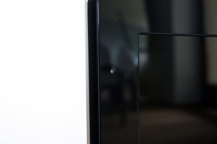 Der HP 2710m kommt mit sehr wenigen Lüftungsöffnungen aus. Lediglich an der oberen Gehäuserückseite ist ein Streifen Lüftungsschlitze zu finden. Der Abstand ist zwar klein, dennoch könnten Staub aber auch kleine Insekten eindringen, letztere weil die Hintergrundbeleuchtung, wenn auch nur gering, durch die Öffnungen leuchtet. Mit dem Ohr an der rechten oberen Gehäuseecke, nehmen wir ein leises Summen des Netzteiles wahr. Ab einem Abstand von etwa 20 Zentimeter ist davon aber nichts mehr zu hören. Das Summen verstummt ab einer Helligkeit von 95 bis 100 Prozent. Allerdings unterliegt die Geräuschentwicklung bekanntlich einer gewissen Serienstreuung und kann deshalb nicht für alle Geräte gleich zutreffen.