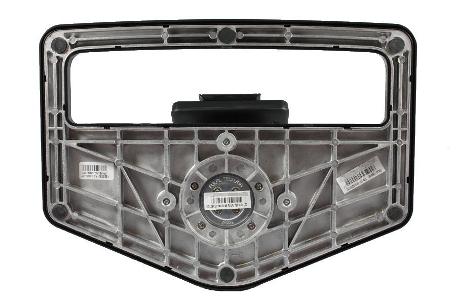 Auf der Rückseite befindet sich eine ähnliche Logokonstruktion in größerer Ausführung. Der untere Teil des Standfußes besitzt eine Aussparung, um Kabel geordnet nach hinten wegzuführen. Über diesem wurde ein Knopf angebracht, der gedrückt werden muss, um den Monitor in der Höhe verstellen zu können. Im oberen Teil gibt es einen Eingriff, der ebenfalls bei der Höhenverstellung behilflich ist und unter diesem eine Sicherung, mit der der Standfuß gelöst werden kann.