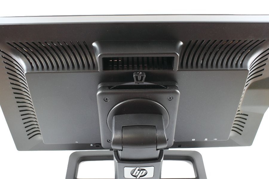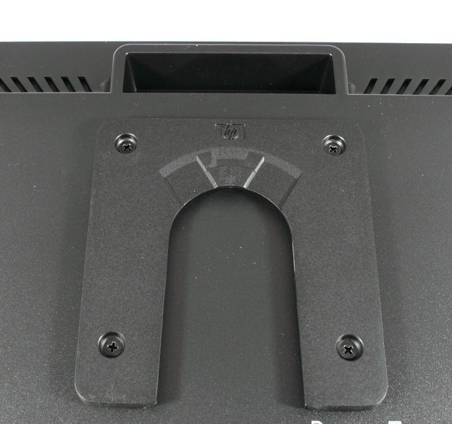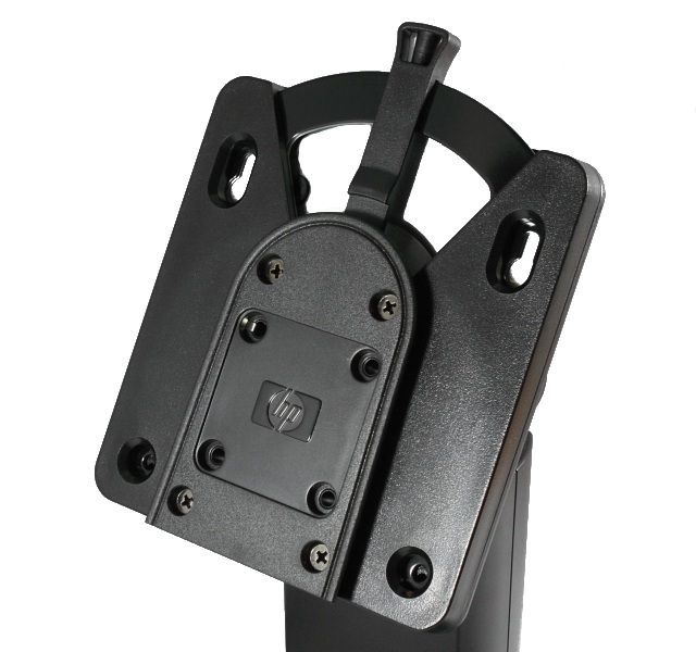 Der Standfuß des HP ZR22w nutzt die vorhandenen Vesa 100 Bohrungen für den mitgelieferten Standfuß, so dass dieser vorher entfernt werden muss, wenn eine alternative Befestigung bevorzugt wird. Dafür müssen die Schrauben nicht entfernt, sondern nur der Hebel über der Befestigung nach links gedrückt und der Monitor nach oben abgezogen werden. Der Schnellverschluss kann danach demontiert und auf die alternative Halterung geschraubt werden, um auch an dieser eine schraubenlose Demontage zu ermöglichen.