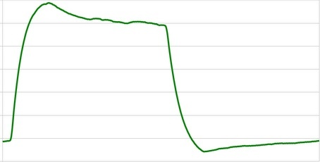 Eine Normvorgabe für die Bestimmung der Latenzzeit bei Monitoren gibt es nicht (siehe hierzu auch unser Special „Untersuchung des Input Lag Testverfahrens“). Wir messen zunächst die Verzögerungszeit bis zum eindeutigen Beginn des Aufleuchtens (10 Prozent der Endhelligkeit). Zu diesem Wert addieren wir noch die Hälfte der mittleren Bildaufbauzeit (hin und zurück).
