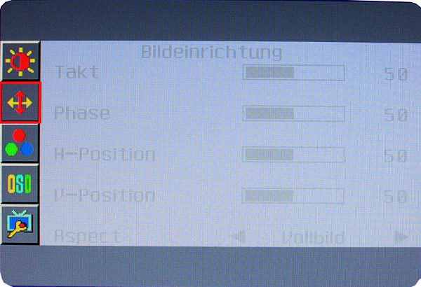 Wird der analoge Videoeingang (D-Sub) verwendet, so lassen sich unter dem Menüpunkt Bildeinrichtung die Bildposition und -frequenz korrigieren.