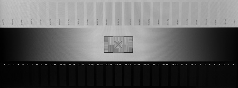 Bei den hellen und auch dunklen grauen Balken konnten nur die jeweils letzten Exemplare nicht mehr vollständig vom Hintergrund unterschieden werden, aber selbst diese waren noch zu erahnen. Dies spricht auf jeden Fall subjektiv für eine gute Voreinstellung des Monitors.