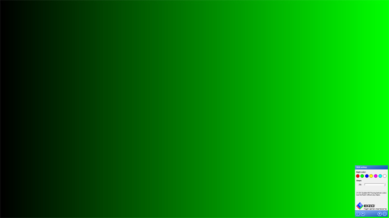 Werkseitig ist der Benutzermodus voreingestellt und eine Backlight-Helligkeit von 60 Prozent. Wegen der ungewöhnlich hohen Leuchtdichte des Iiyama XB2779QS erreicht die LED-Hintergrundbeleuchtung selbst mit 60 Prozent noch eine Leuchtdichte von 308 cd/m² und ist damit für die meisten Arbeitsplätze viel zu hell. Wir reduzieren daher zuerst einmal die Helligkeit auf 0 Prozent. Mit angepasster Helligkeit ist der subjektive Bildeindruck schon viel besser. Die Anzeige ist sehr scharf, mit brillanter Farbwiedergabe und hohem Kontrastverhältnis. Farbverläufe werden zum größten Teil sehr sauber aufgelöst. Nur in einzelnen Farbkombinationen ist sehr feines Banding zu beobachten, so zum Beispiel bei einem Grün- oder Grauverlauf. Die Farbstufendarstellung gelingt dem Iiyama XB2779QS ebenso sehr gut. Alle Farbstufen auf unserem Testbild können klar differenziert werden.