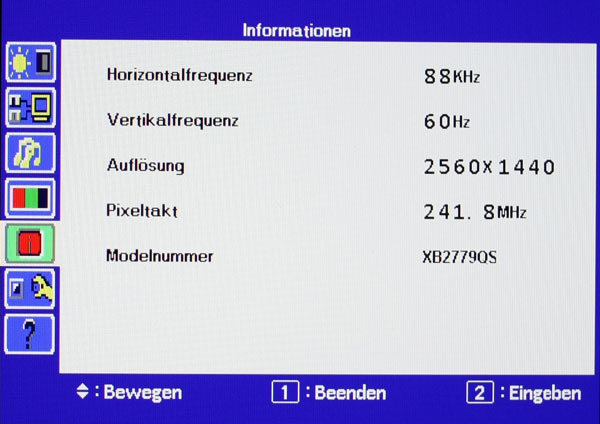 Auskunft über den Iiyama XB2779QS gibt dieses Menü. Dieses Menü dient nur zu Informationszwecken.