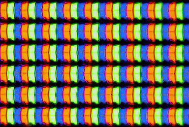 Die einzelnen Subpixel sind in der Makroaufnahme klar zu erkennen. Für die Schärfeleistung ist das optimal, eine lichtstreuende Wirkung gibt es dagegen überhaupt nicht. Der Kristalleffekt (Glitzern) kann hier nicht entstehen.