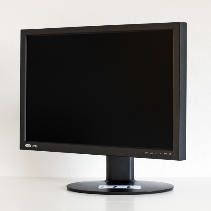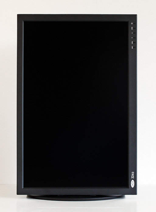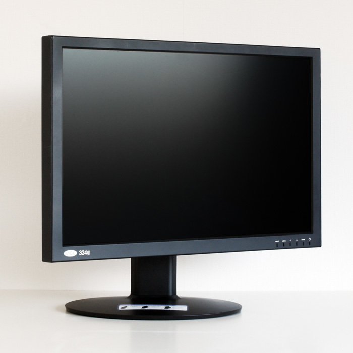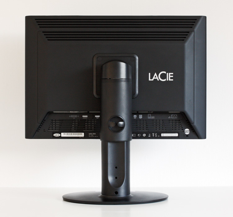 Der LaCie 324i verzichtet auf Extravaganzen im Design und entspricht damit der im Premiumbereich vorherrschenden Philosophie. Das schwarze Gehäuse ist nicht aufgeraut und passt sich gut in jedes Arbeitsumfeld ein.