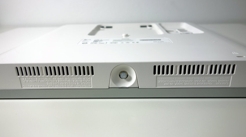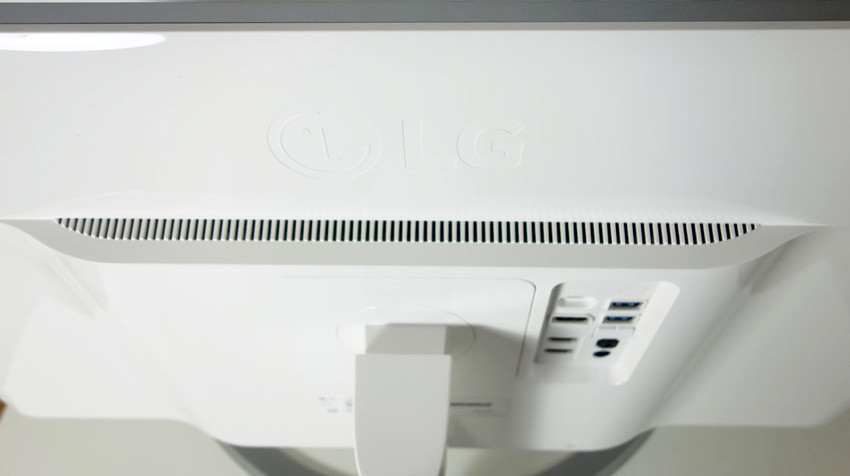 Obwohl der LG 27UD88 über ein externes Netzteil mit Strom versorgt wird, finden sich Belüftungsöffnungen an der Gehäuserückseite und auch -unterseite.