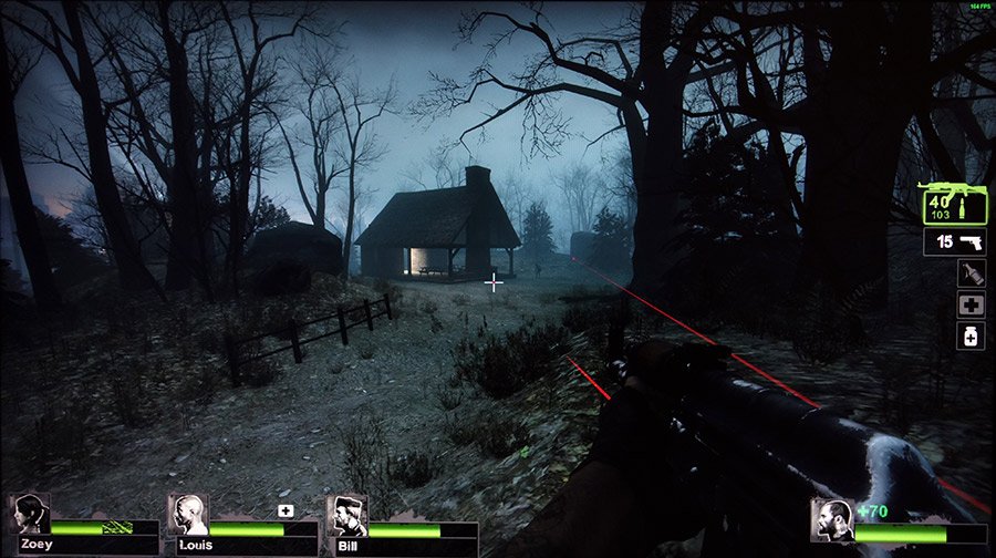 In vier Stufen lässt sich der Schwarzstabilisator einstellen: „Aus“, „Gering“, „Mittel“ und „Hoch“. Im Beispiel des düsteren Zombie-Shooters Left 4 Dead 2 haben wir versucht, den Effekt anschaulich darzustellen.